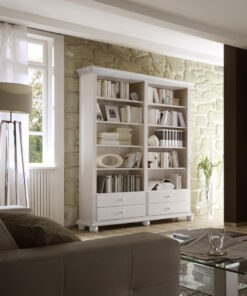 Biblioteca Bavaria 180 cm – 100% lemn masiv. Se poate comanda complet alb sau alb cu miere(ca in poza). Nuanta de alb este alb antic(alb cu o usoara tenta crem).