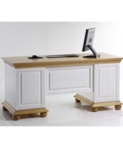 Birou 100% lemn. Poate fi alb complet, alb cu bordura miere(ca in poza), alb cu bordura nuc sau complet in nuanta nuc. Nuanta de alb este alb antic, cu o foarte usoara tenta crem.