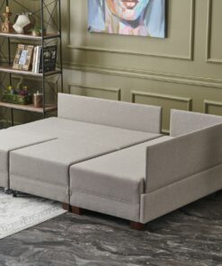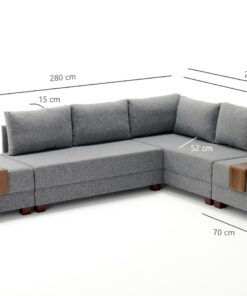 Colțarul Fly Lounge oferă un design inteligent și multifuncțional, fiind perfect pentru spații moderne. Cu dimensiuni de 280×210 cm și un mecanism practic, fiecare latură poate fi extinsă pentru a forma un spațiu de dormit de 140 cm. Tapițat cu o stofă groasă, rezistentă la murdărie, acest colțar combină confortul cu durabilitatea. Tăvițele din lemn de pe fiecare latură sunt ideale pentru așezarea unei căni de cafea sau a unei cărți, adăugând un plus de utilitate și stil.