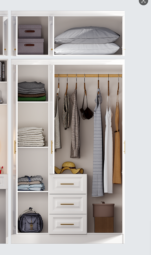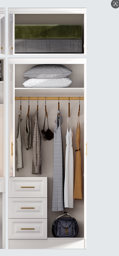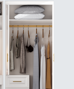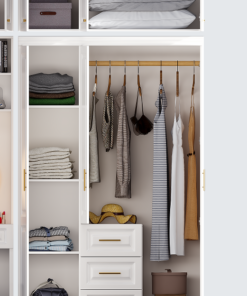Simplu, spatios si frumos finisat. Un dulap care arata bine si ajuta sa tii totul in ordine fara batai de cap.
