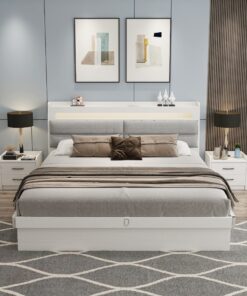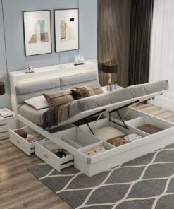 Pat Lucio, cu spatii depozitare si sertare. Patul are si buton on/off, daca doriti sa instalati LED in capatai. Nu include LED.
