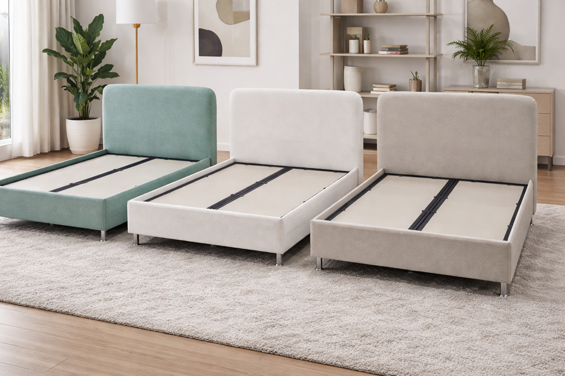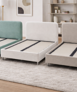 Tapițeria din stofă soft, plăcută la atingere, este disponibilă în trei nuanțe moderne: Verde Mint, Crem Vanilie și Grej Elegant.