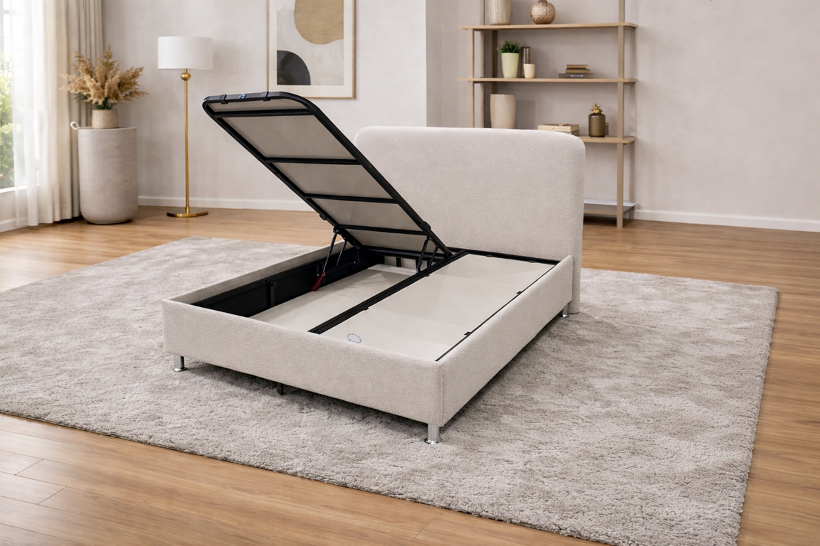Pat tapitat Aero cu somieră rabatabilă și spațiu de depozitare