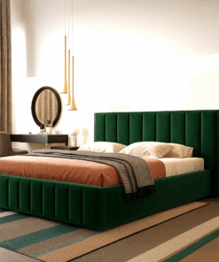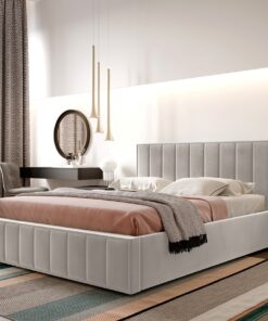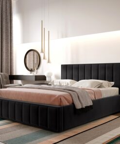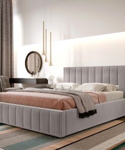 Linii verticale elegante, tapiterie din textil catifelat, stil contemporan, potrivit oricarui dormitor.