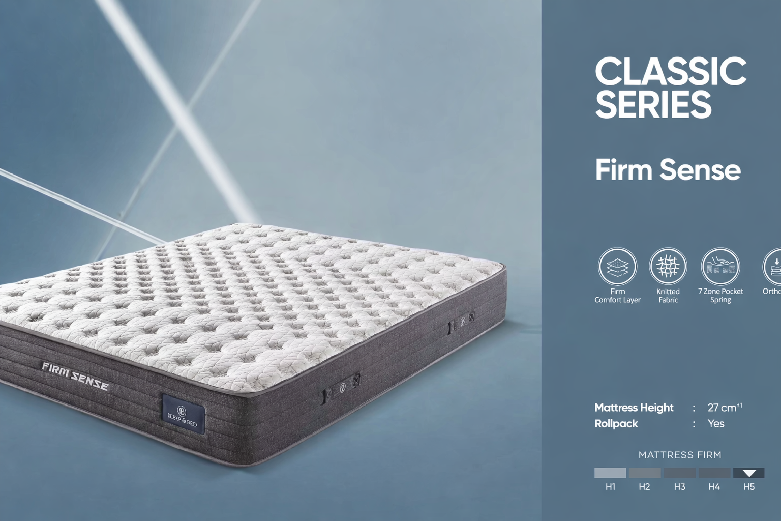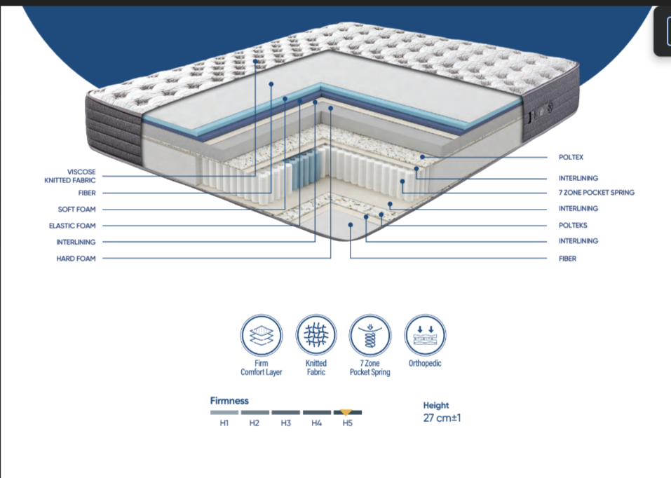 Salteaua Sense este o saltea cu fermitate medie spre fermă, concepută pentru susținere corectă și confort echilibrat. Structura cu arcuri individuale Pocket Spring în 7 zone ajută la distribuirea uniformă a greutății și la reducerea punctelor de presiune în timpul somnului. Straturile multiple de spumă și materialele textile respirabile contribuie la stabilitate, ventilație și durabilitate. Cu o înălțime de 27 cm, Sense este potrivită pentru persoanele care caută o saltea solidă, bine construită, fără compromisuri inutile.