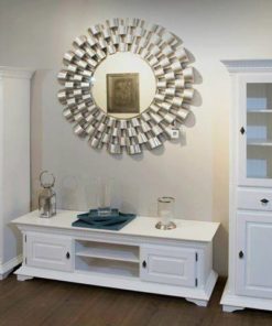 Vitrina London, 100% lemn masiv, alba, fibra lemnului fiind foarte usor vizibila.