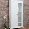 Vitrina „Naturis M”, 100% lemn masiv,inclusiv politele, nuanta alb. Disponibila si in varianta cu usa cu geam.